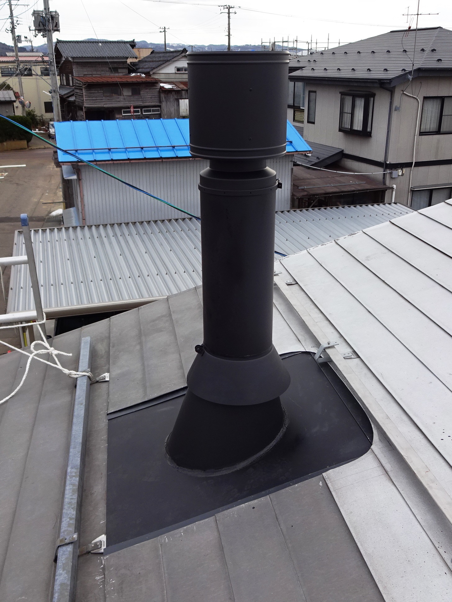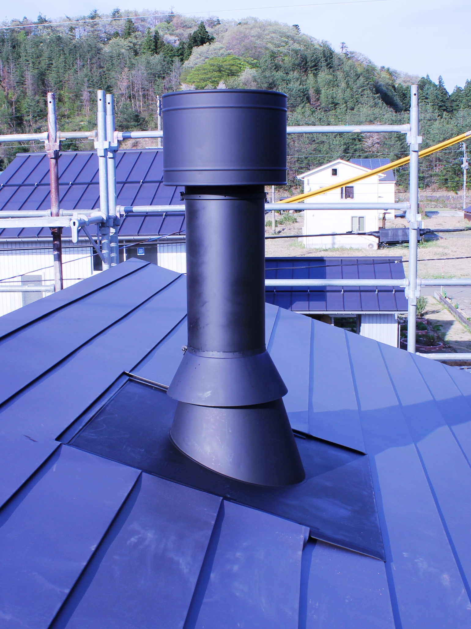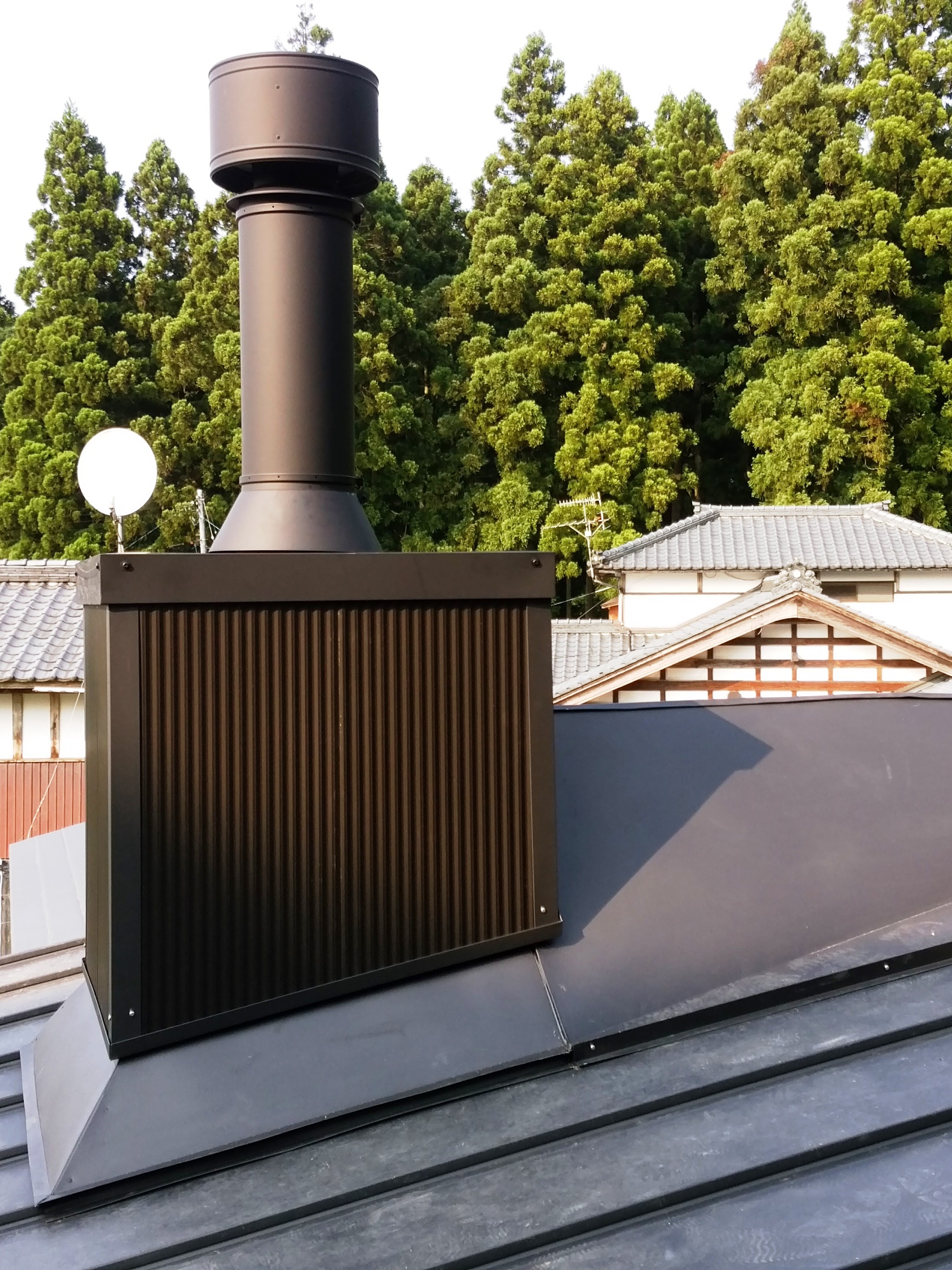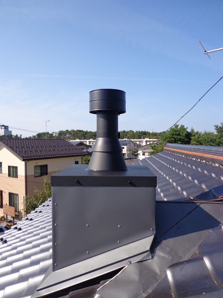 煙突メーカー:ヨツールパイプシステム 屋根貫通チムニーカバー施工