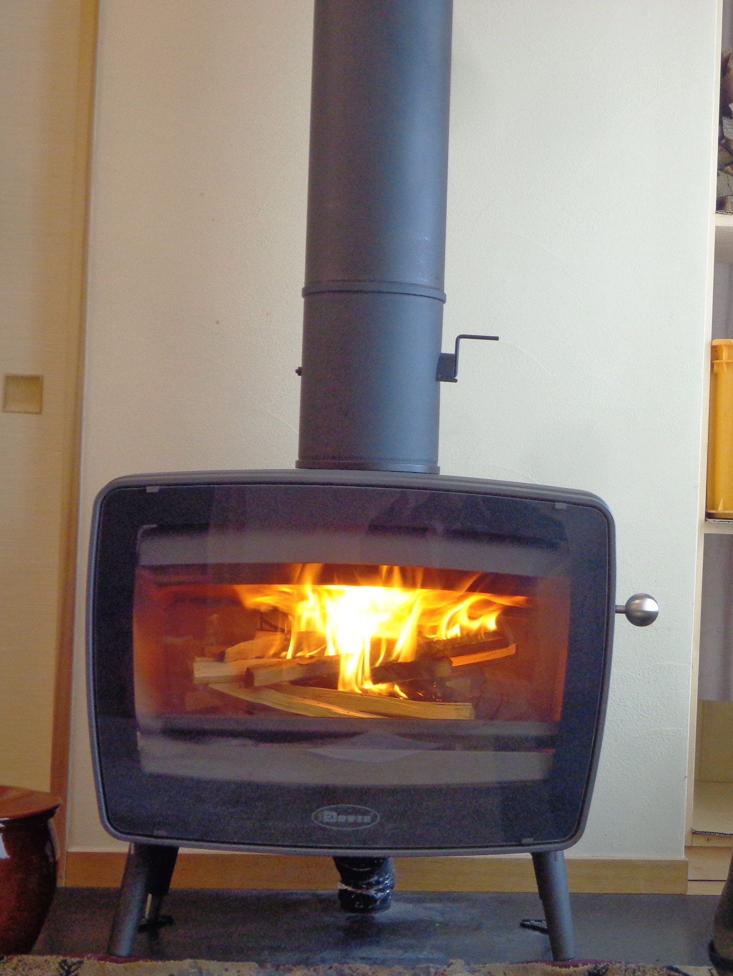 リフォーム工事で今まで使用してたシングル煙突から断熱二重煙をお薦めしました。 煙突も新しくなり、やはり薪ストーブも新品のドブレ640CBとなりました。