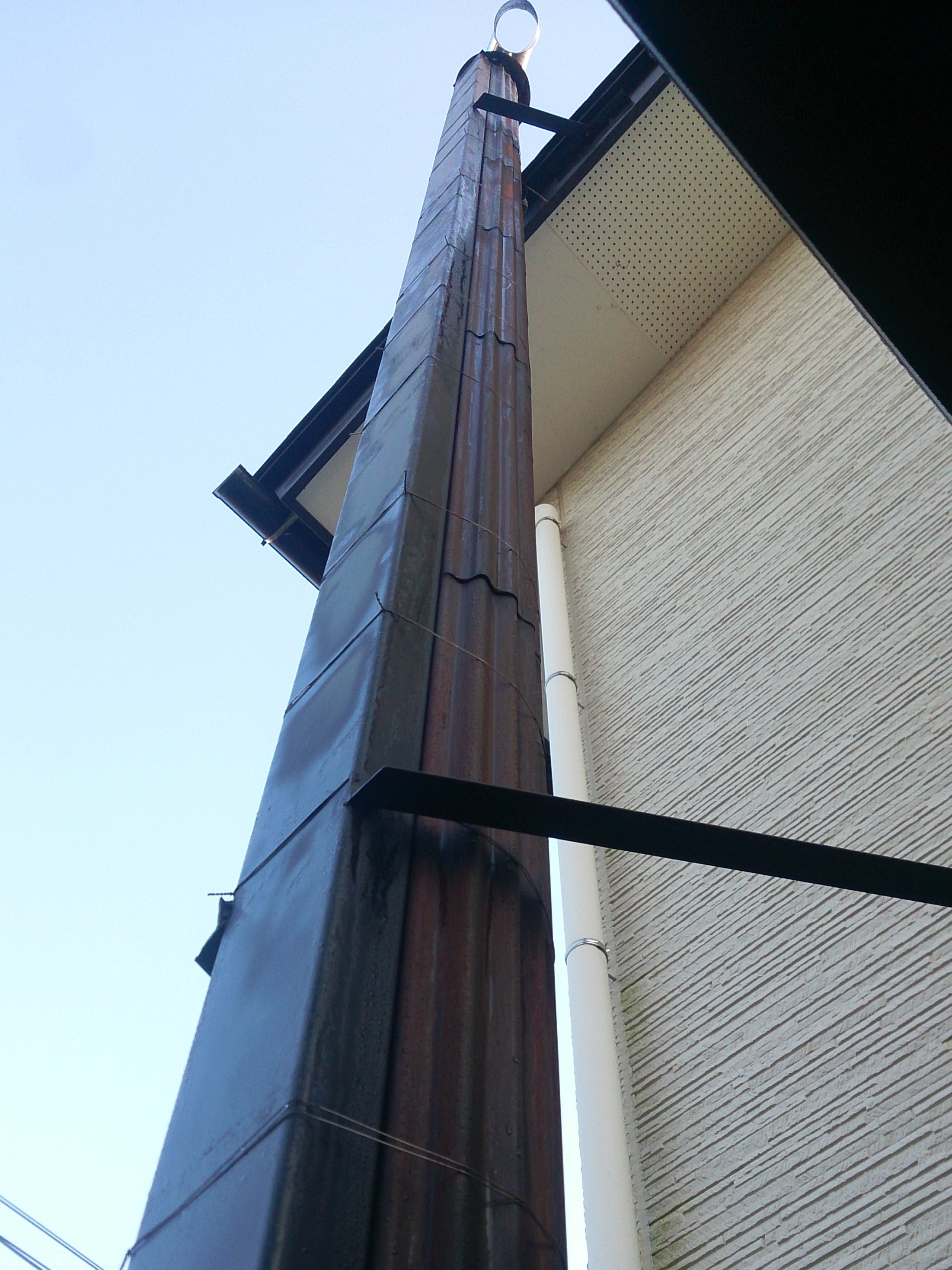 煙突メーカー:ヨツールパイプシステム 特注角トップ施工