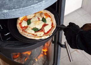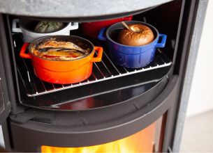 炉とオーブンが別構造のため、最大限にあたたまりながらクッキングスペースが活用できます。